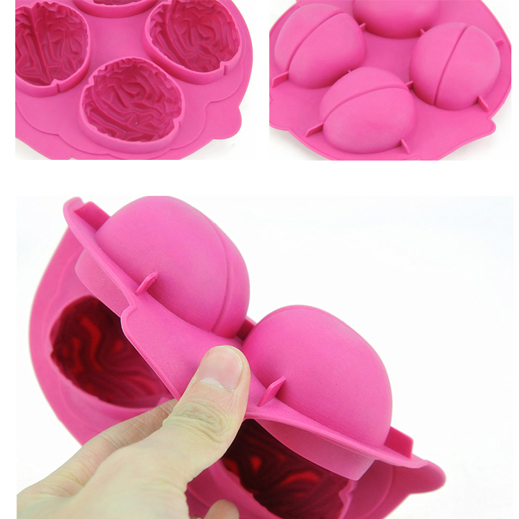 四穴硅膠冰球模具,直徑4.5cm,全新設計的“大腦形狀”冰格,新增扣釘設計,不但增強了上下模鎖合力,也讓您更容易觀察及判斷上下模是否已經完全貼合。