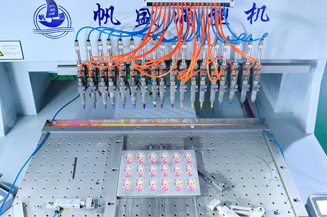 自動點膠機制作PVC工藝品時候很大程度上提高了生產效率,提高了產品的品質,能夠實現一些手動點膠無法完成的工藝。自動點膠機在自動化程度上,能夠實現三軸聯動,智能化工作。綜上所述,下面為您講解自動點膠機具體特性如下: