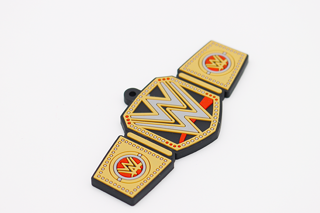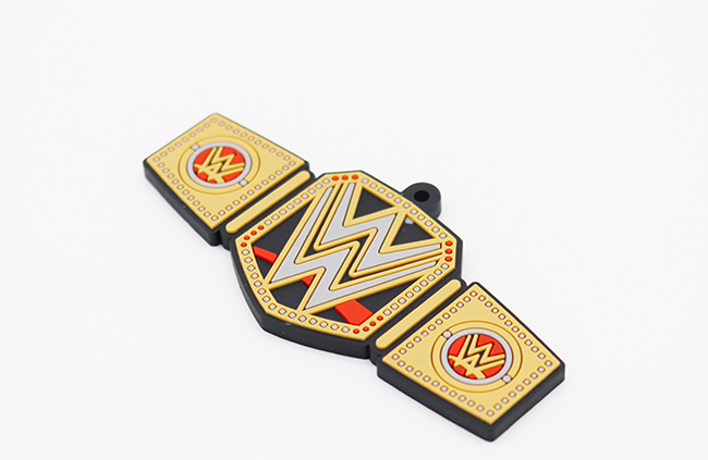 這是一款獨特設計定制化PVC鑰匙扣,鑰匙扣是按美國的綜藝節目wwe的金腰牌來制成,可以看出從不一樣的PVC鑰匙扣掛件。